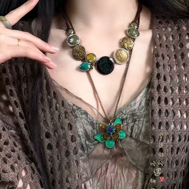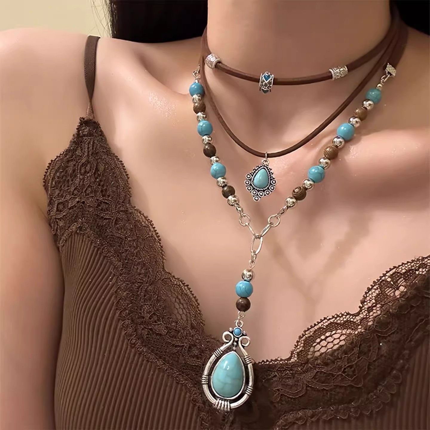 2025 New Style [Noticeable Turquoise] Bohemian Retro Multi-Layered Necklace Niche Design Clavicle Chain