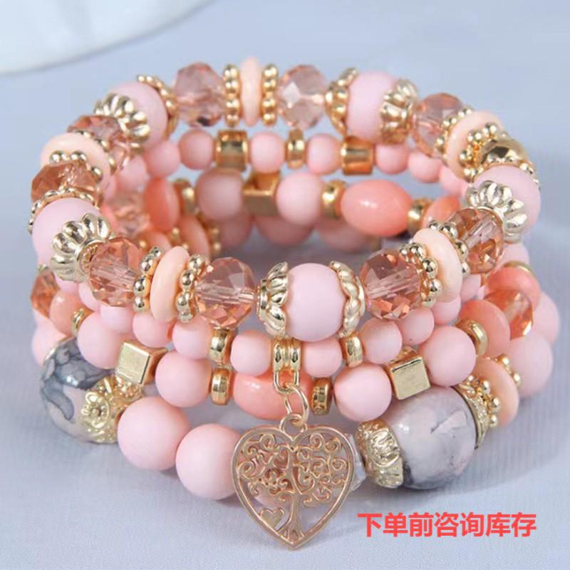 European and American Bracelets, Bohemian Ethnic Style Crystal Peach Heart Multi-Layered Bracelets, Beaded Women's Jewelry, Heart-Shaped Cross-Border Hot-Selling