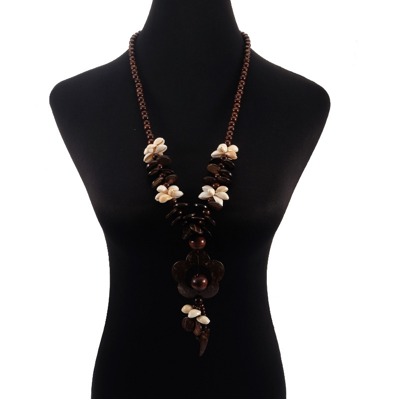 Retro Bohemian Coconut Shell Necklace Ethnic European and American Handmade Beaded Wood Beaded Coconut Shell Flower Necklace