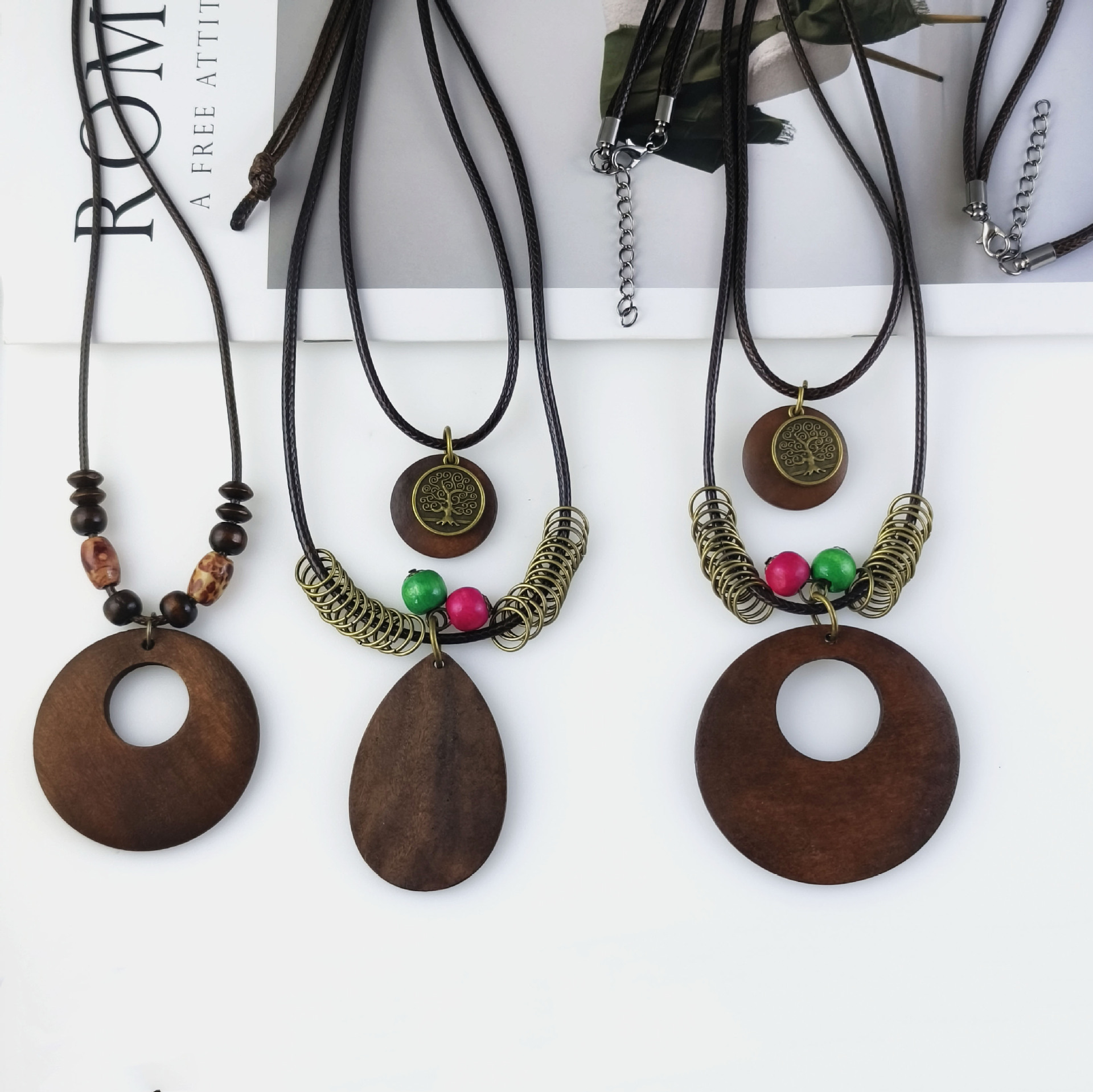 New Chinese Zen Style Long Bohemian Wooden Necklace, Fashionable Retro Stacked Sweater Chain, Personalized and Elegant Accessories