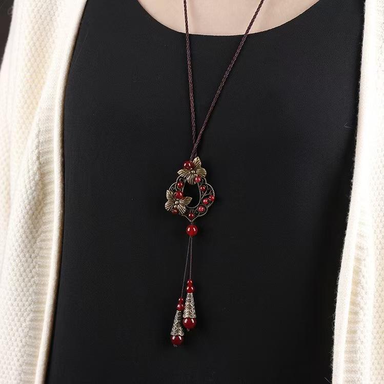 Bohemian Ethnic Style Jewelry Wholesale Butterfly Necklace Women's New Chinoiserie Classical Long Pendant Sweater Chain Accessories