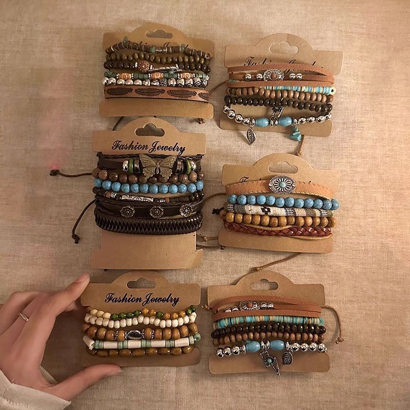 Bohemian Retro Beaded Bracelet for Women, Natural Stone Stacked, High-Looking Student Party, Suitable for Summer Hand Jewelry