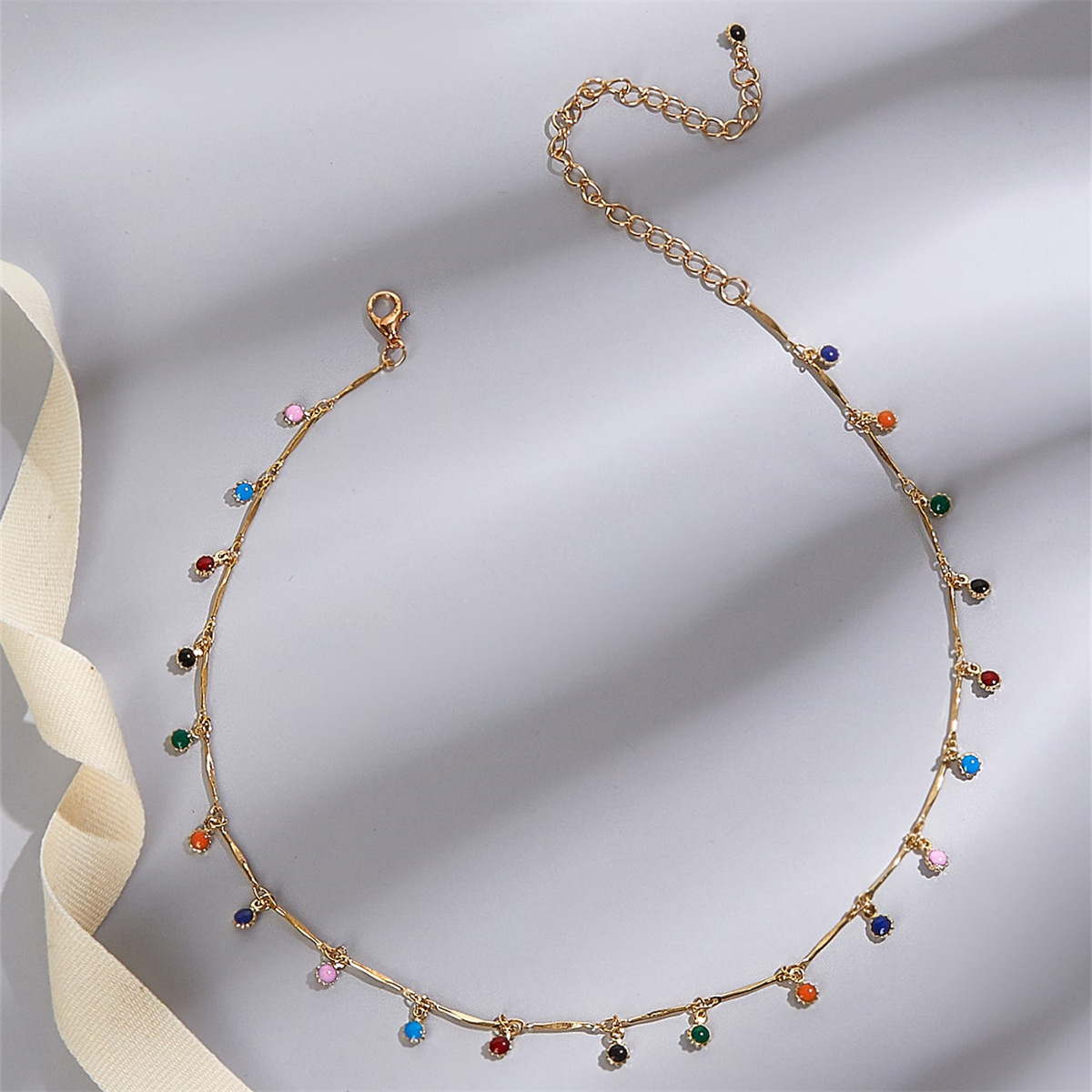 Bohemian Simple Candy Tassel Women Necklace Colorful All-match Sweet Drop Necklace