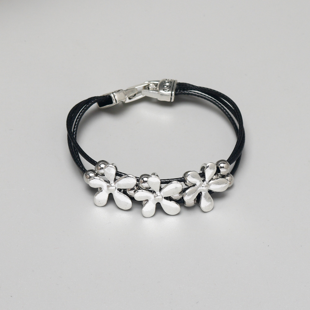 New trend Bohemian flower bracelet vintage alloy plating leather rope hair ring jewelry manufacturers wholesale