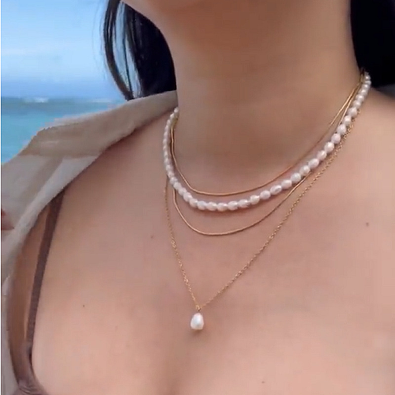 Cross-Border New Bohemian Fashion Exquisite Clavicle Chain Pearl Beaded Snake Bone Chain Simple Pearl Pendant Necklace