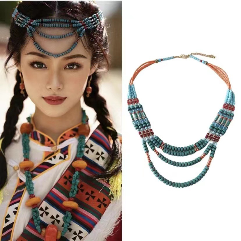 Ethnic style forehead decoration necklace dual-use 4-layer rice beads bohemian travel photography performance decoration hair accessories female handmade