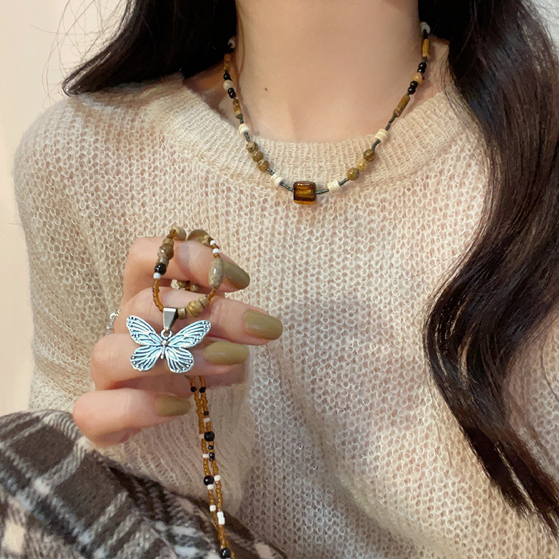 Bohemian Ethnic Style Necklace Female Niche Design Neck Chain New Chinese Retro Beaded Butterfly Accessories Wholesale