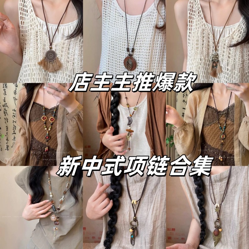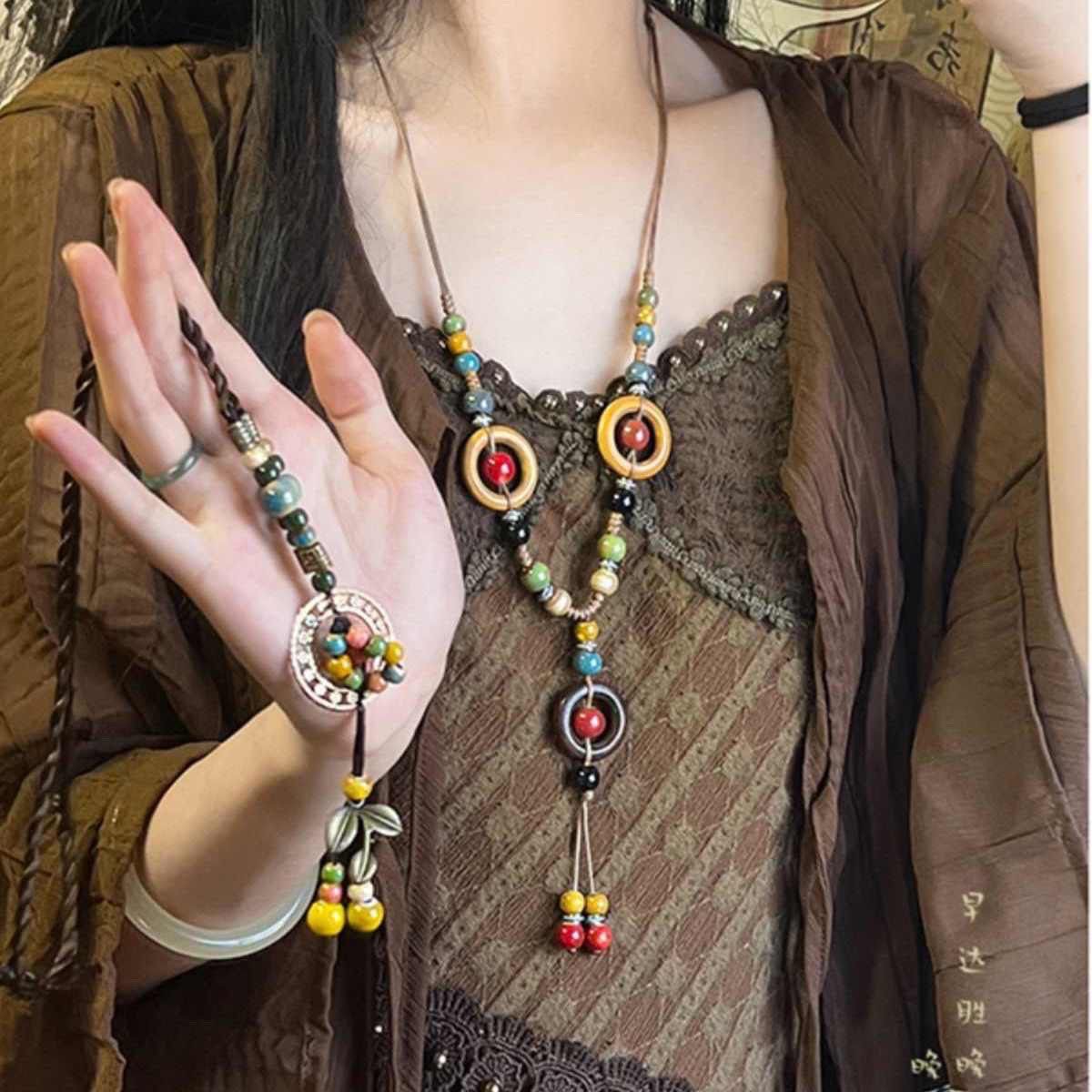 Retro Bohemian Style Ceramic Necklace New Chinese Style High-end Alien Ethnic Style Zen Long Woolen Chain Accessories