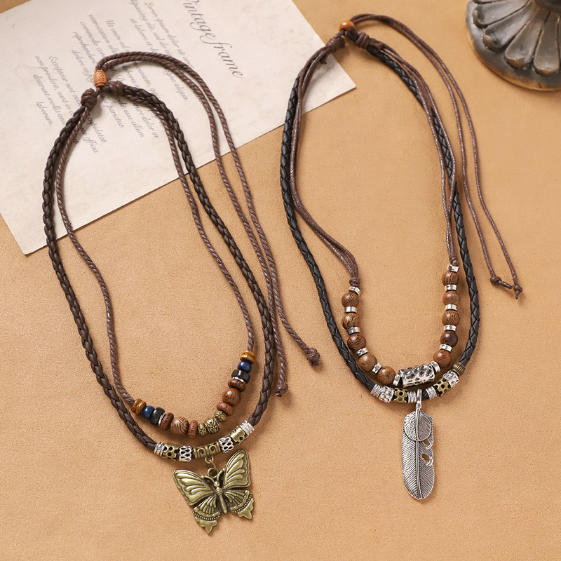 Hand-woven vintage butterfly necklace Bohemian exotic ethnic style beaded new Chinese style overlapping clavicle chain for women