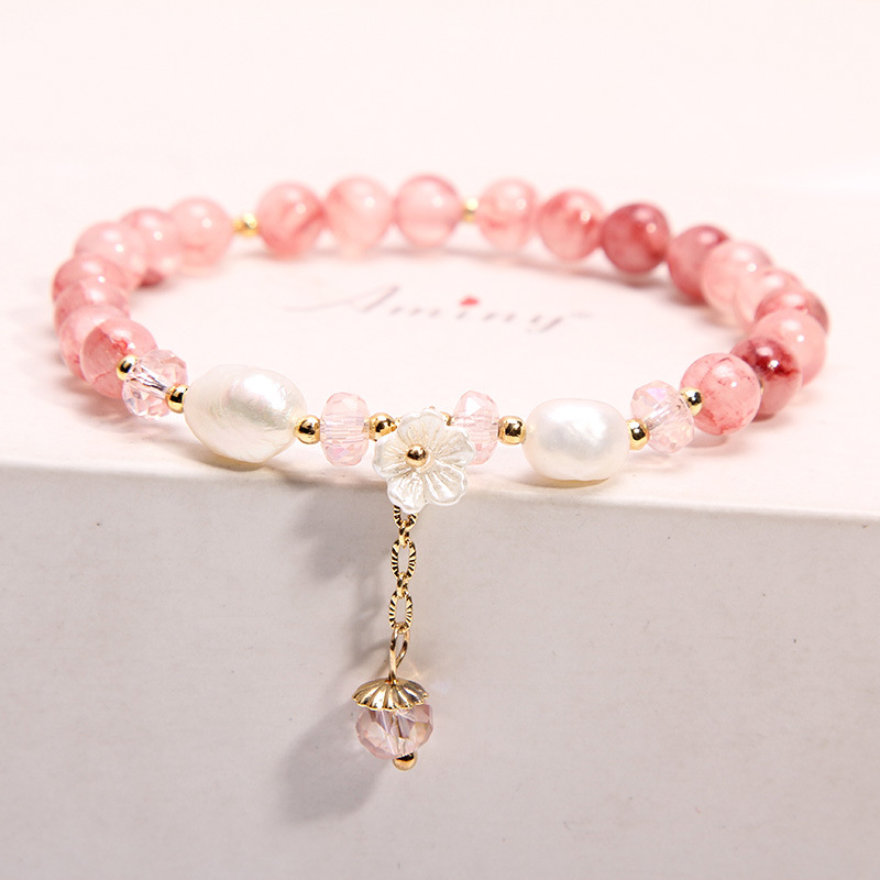 Korean version of garnet crystal bracelet freshwater real pearl women's shell flower bracelet jewelry wholesale