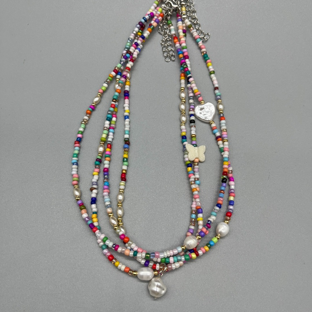 Korean Style New Colorful Beaded Necklace Women's All-match Bohemian Girl Style Colorful Pearl Butterfly Necklace Women