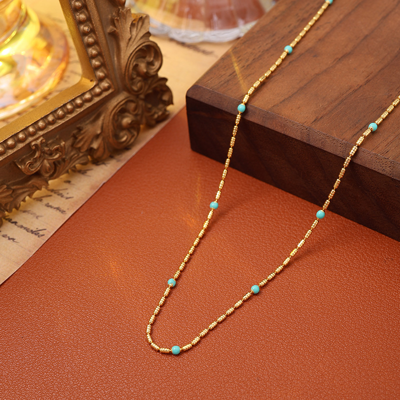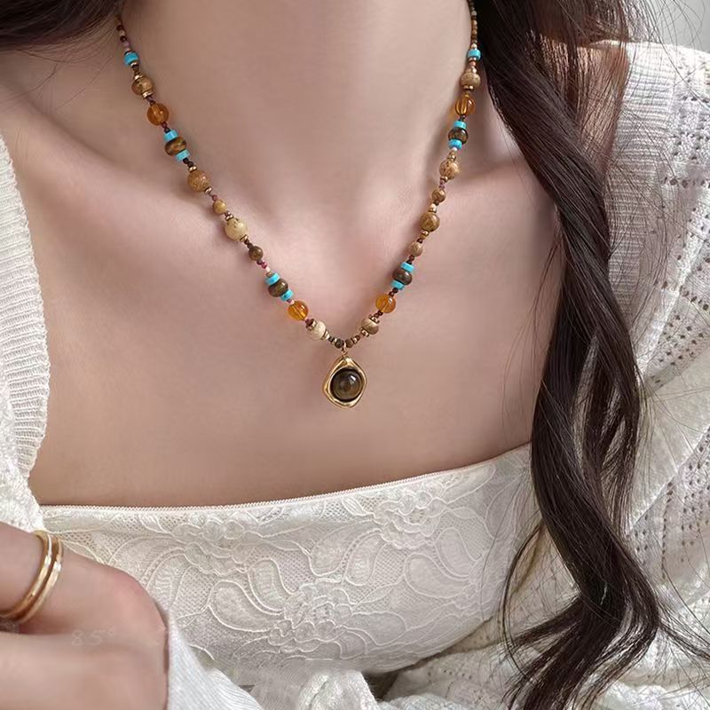 Retro Ethnic Style Stone Beaded Necklace Women's Niche Design Sense of Design Elegant Holiday Style Personalized Clavicle Chain
