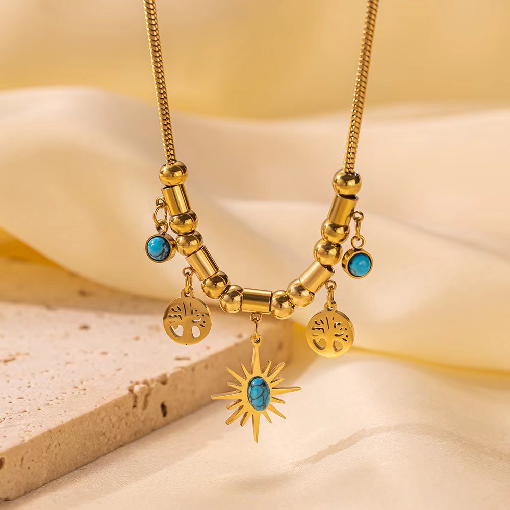 European and American Cross-border Retro Bohemian Style 18K Gold-plated Bracelet for Women Niche High-end Turquoise Star NecKlace