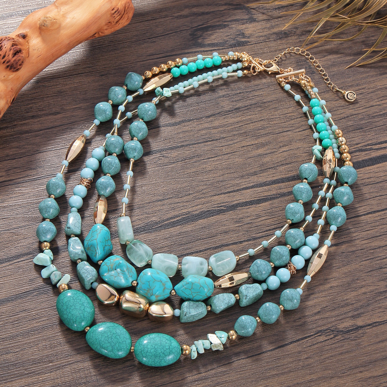 European and American High-End Exaggerated Cross-Border Bohemian Blue Turquoise Necklace Ethnic Style Water Drop Photography Travel Photography Heavy Industry Necklace
