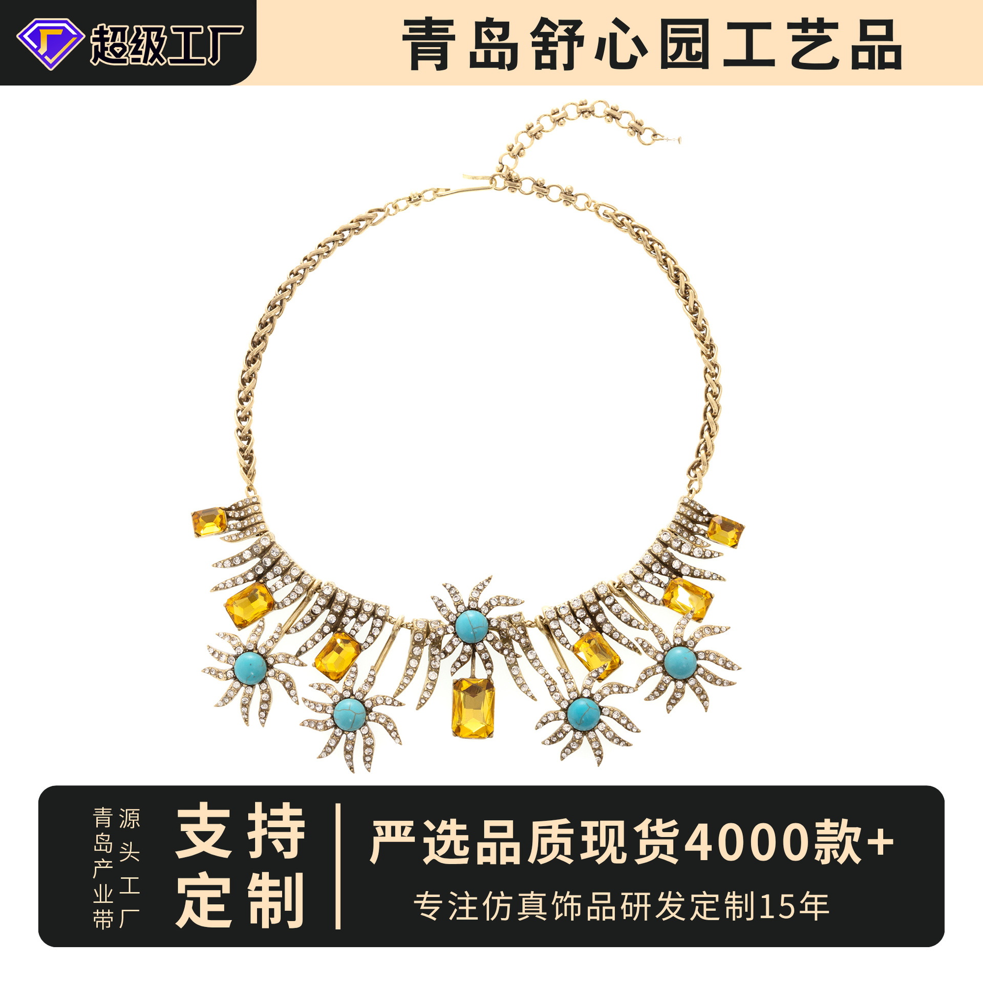 European and American New Sunflower Turquoise Necklace Amazon Best-Selling Retro Bohemian Ethnic Style Necklace Jewelry