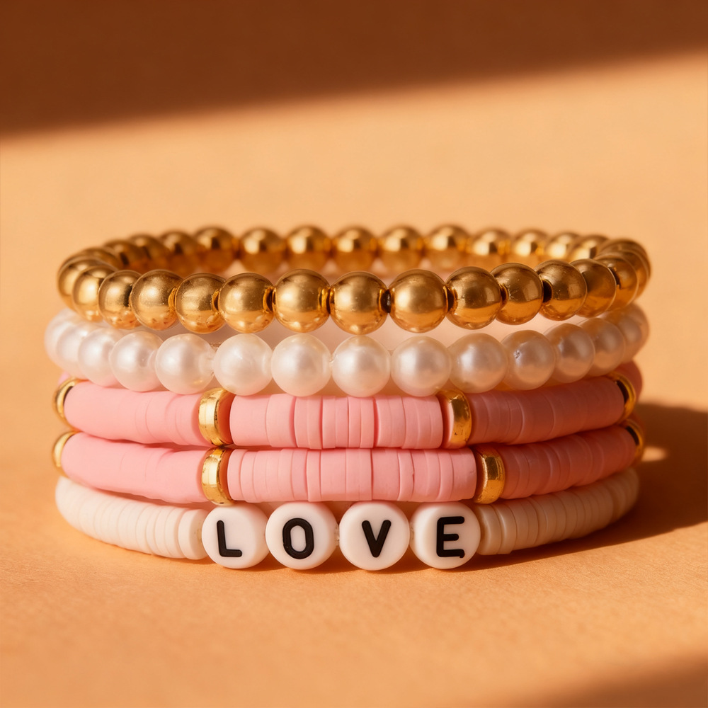 Cross-Border European and American Jewelry Hand Jewelry Colorfulful Soft Pottery Retro Elegant Colorfulful Pearl Soft Pottery Bracelet Bracelet Love 5 Pieces