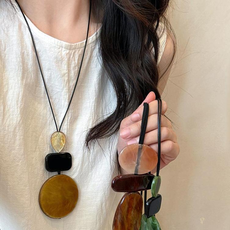 Bohemian Resin Tassel Pendant Necklace Ethnic Style Simple Sweater Chain Niche High-End Elegant Necklace for Women