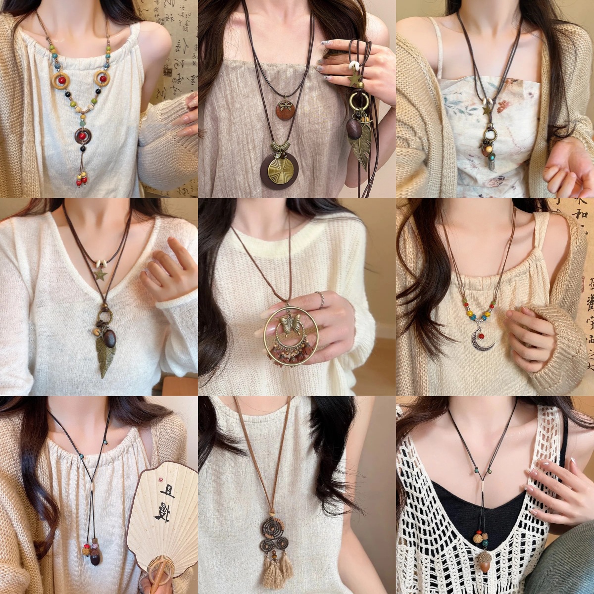 New Chinese Style Bohemian Style Ceramic Necklace for Women Exotic Retro Ethnic Style Exquisite Light Luxury Long Necklace Jewelry