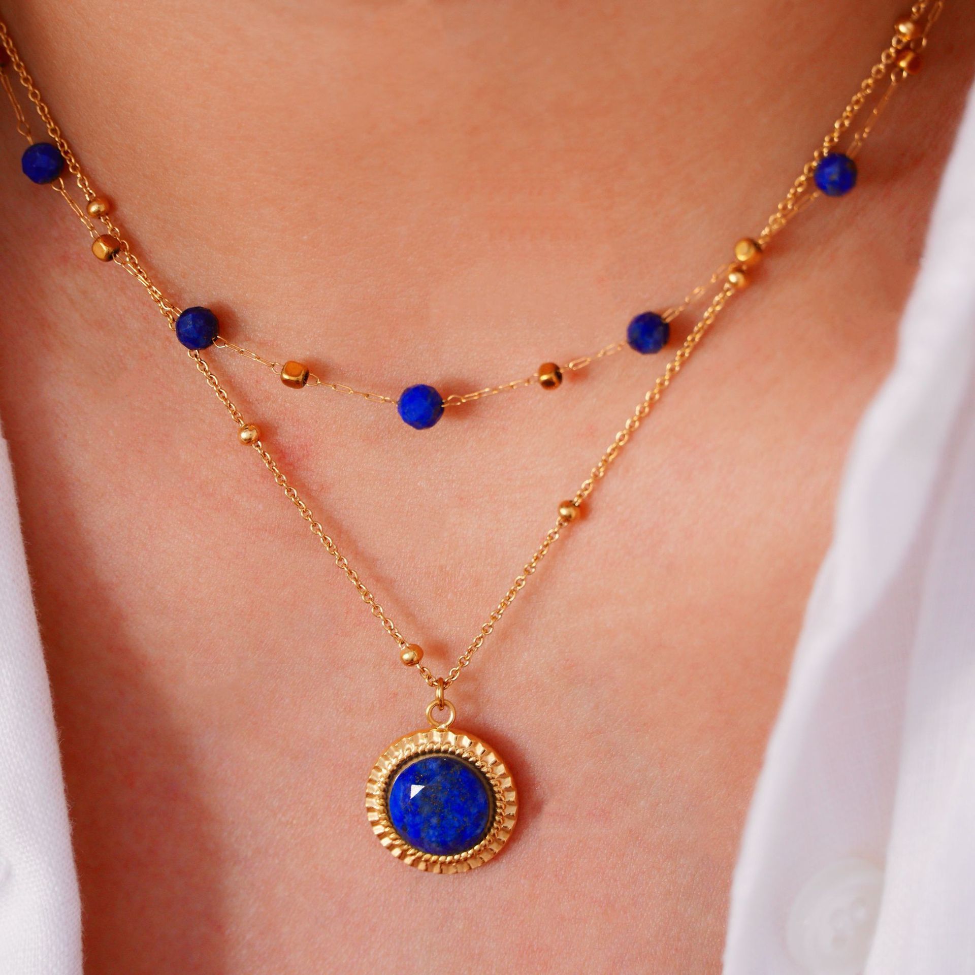 French Vintage Light Luxury Natural Stone Pendant Necklace Stainless Steel 14k Gold Cross Border Clavicle Chain Bohemian Elegant
