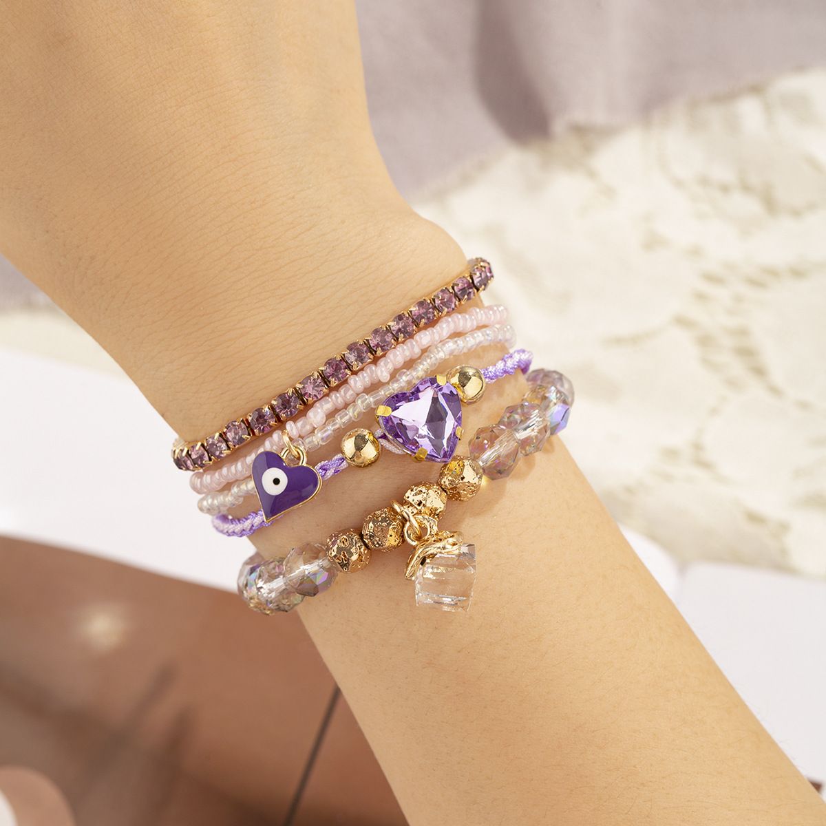 Cross-border New Color Soft Pottery Elastic Bracelet Colorful Rainbow Women's Hand Rope European and American Style Star Heart Bracelet