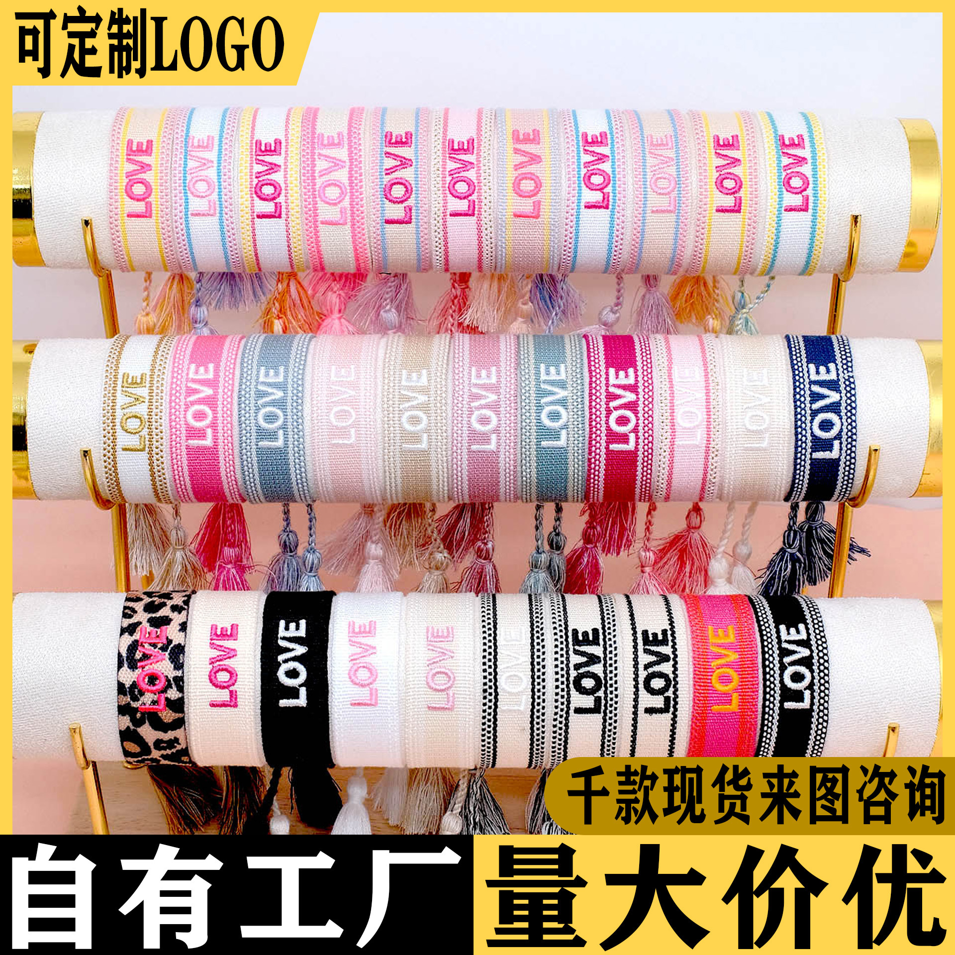 European and American Cross-Border Bracelet Letter Logo Bracelet Retro Tassel Hand-Woven Bracelet Manufacturer Spot Direct Sales Webbing