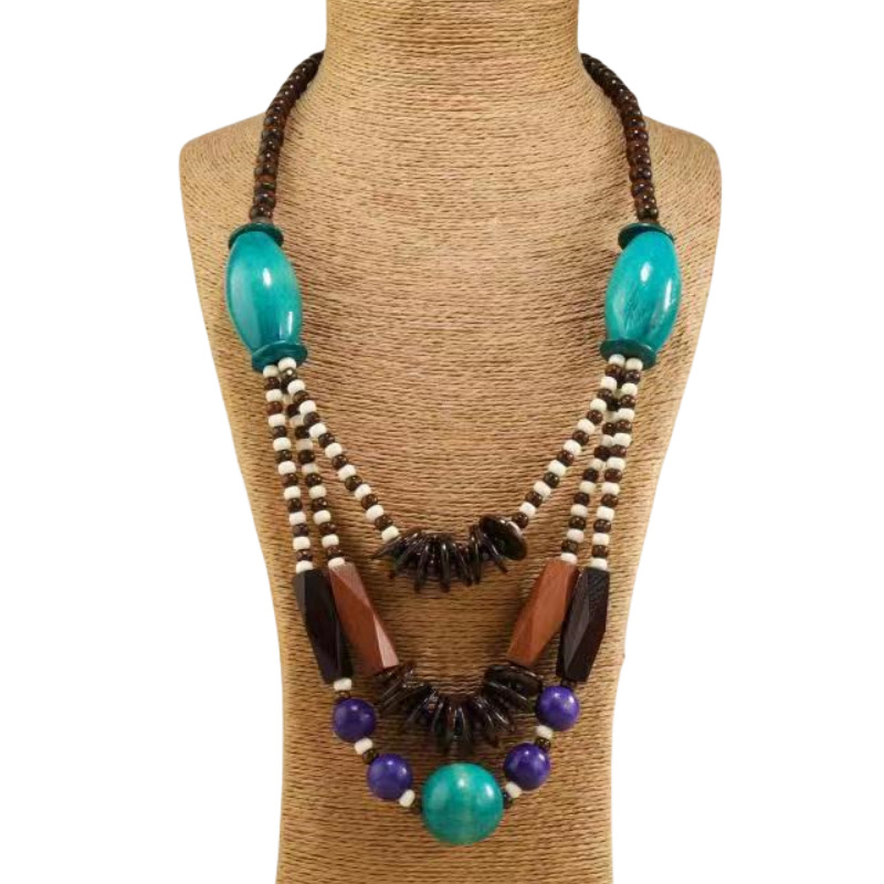 Vintage Bohemian Necklace Ethnic Style Multi-Layer Wooden Beads Long Necklace Beaded Woven Collar All-Match High-Level Sense