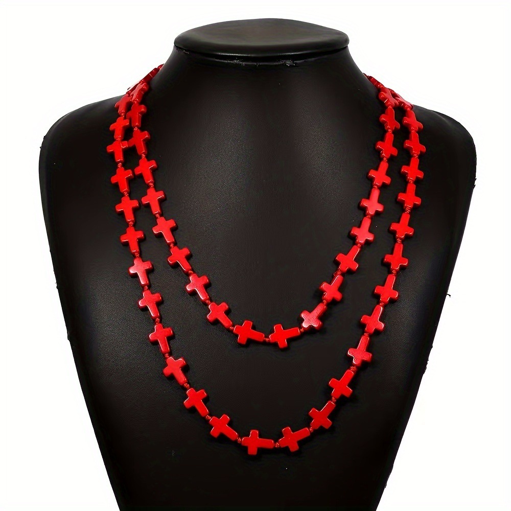 Bohemian vintage long red pine stone necklace original design national style hand knotted long necklace cross