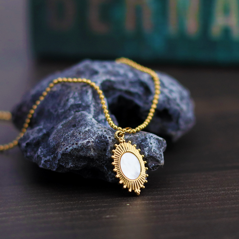 Bohemian Retro Stainless Steel Geometric Oval Shell Pendant Necklace Summer Simple Titanium Steel Round Bead Clavicle Chain
