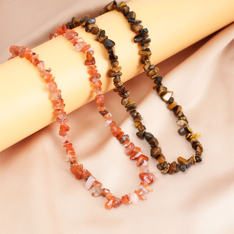 Bohemian Natural Gravel Crystal Necklace Cross-border Irregular Small Gravel Simple Amethyst Tiger Eye Clavicle Chain