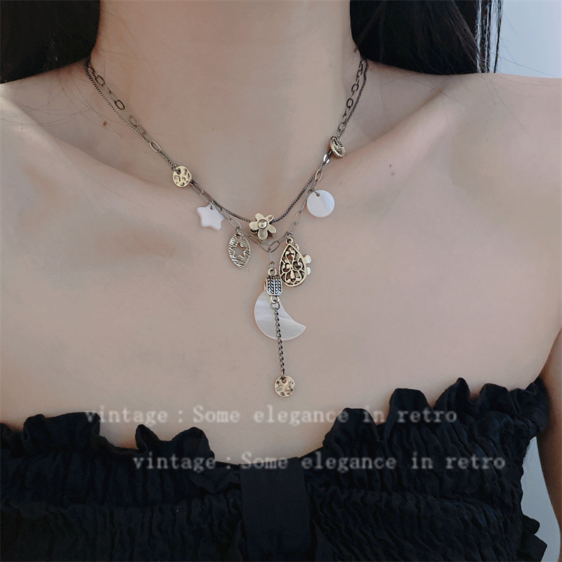 New Antique Moon Star Flower Exaggerated Hip Hop Style Collarbone Necklace Exoque Ethnic Style Chorum Pendant