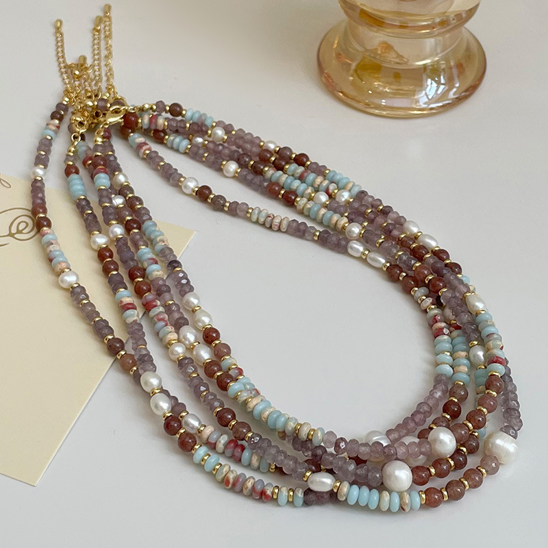 European and American Niche Retro Bohemian Mixed Color Stone Beaded Stitching Fashionable Simple Fresh Necklace Clavicle Chain
