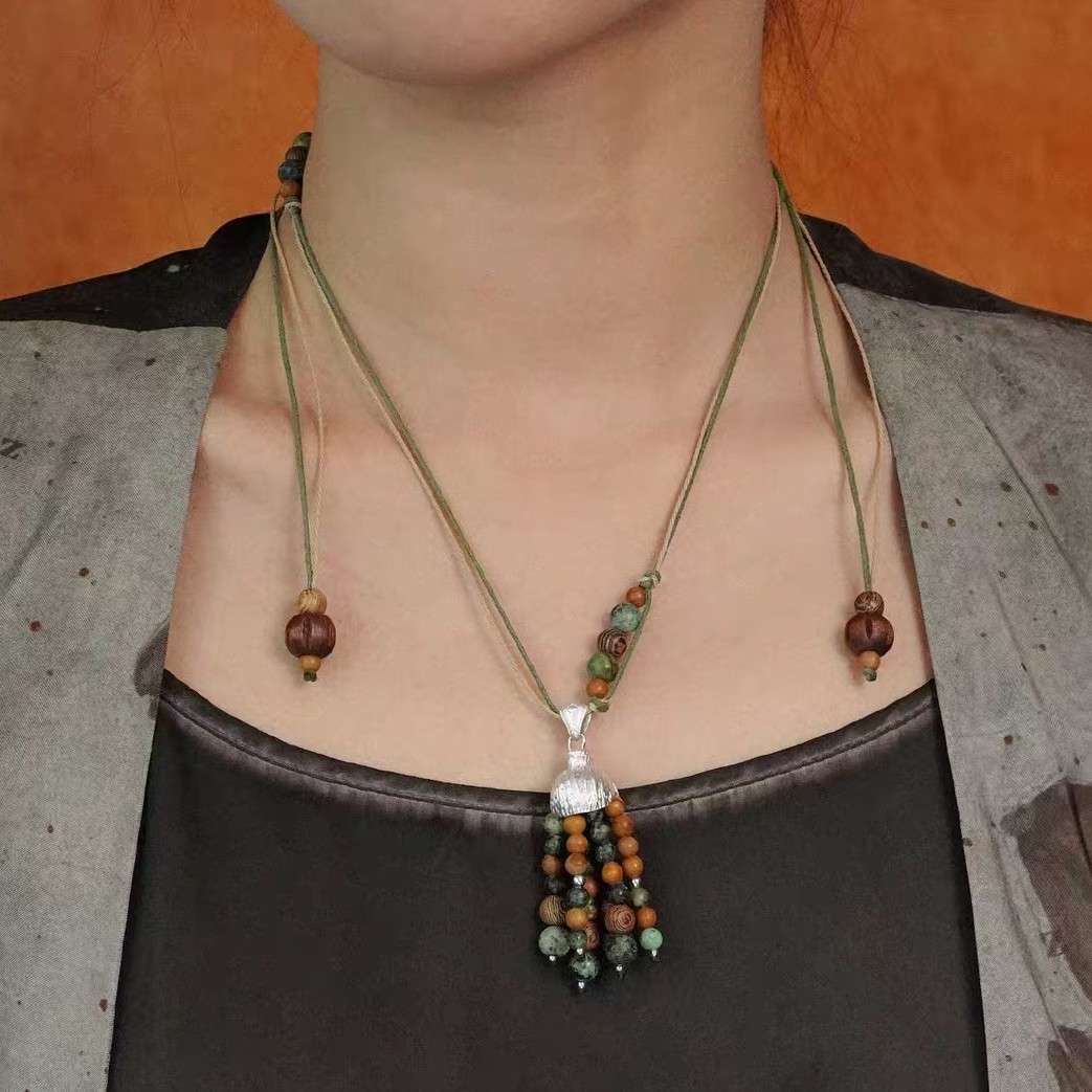 Ethnic Feng Shui Drop Button Pendant Necklace Women's New Chinese Style Long Bohemian Retro Sweater Chain Pendant Accessories