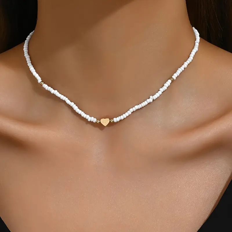 European and American Cross-border Hot Selling Bohemian White Rice Beads Love Necklace Women's Creative Simple Light Luxury Elegant Necklace