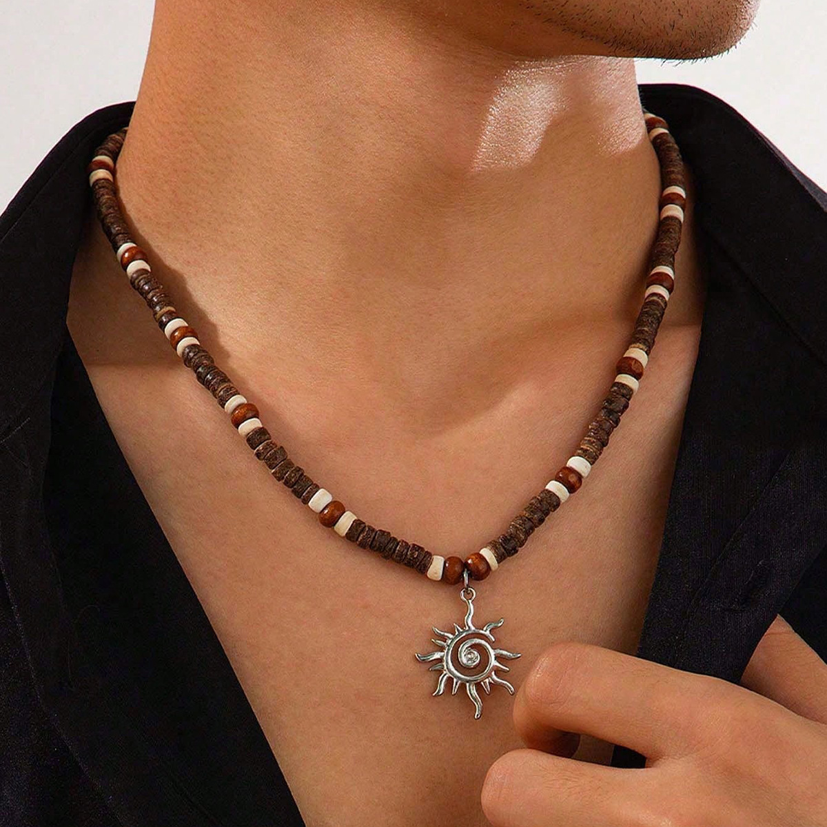 European and American Popular Summer Beach Bohemian Style Necklace Men's Surf Necklace Simple Wooden Bead Clavicle Chain Jewelry