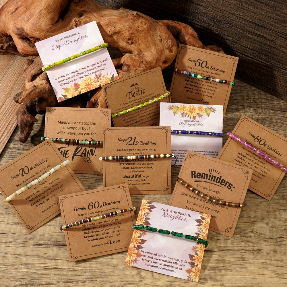 Retro Style Natural Stone Bracelet, Black Gallstone Spacer, Braided Bracelet with Card, Birthday Gift, Men's Bracelet