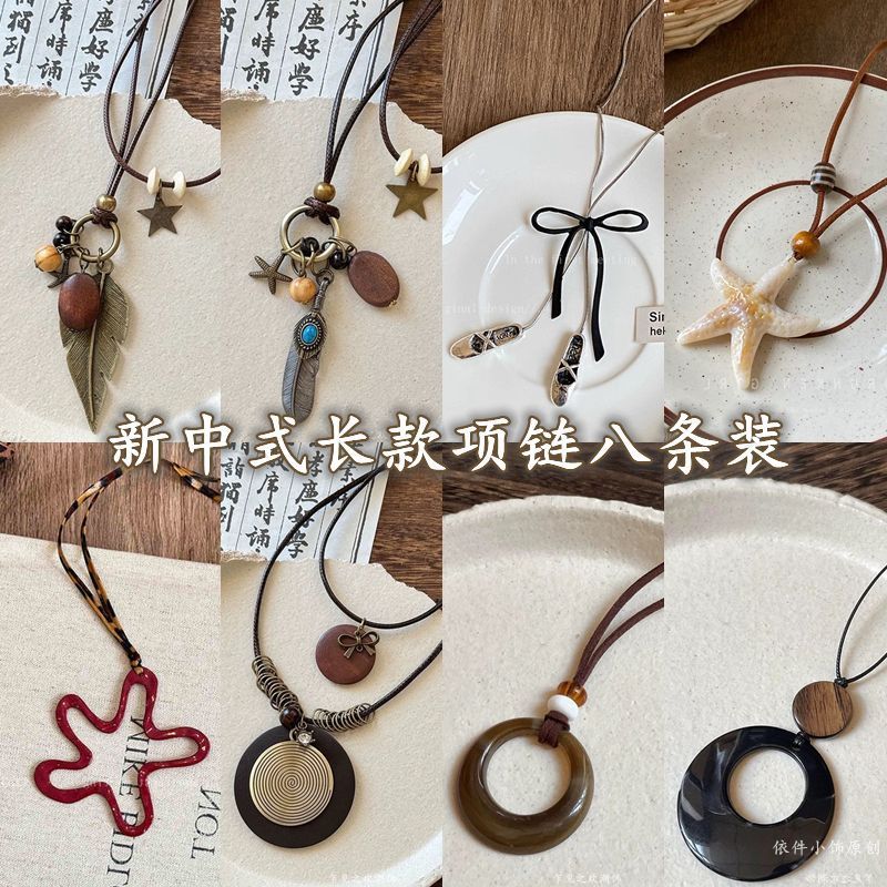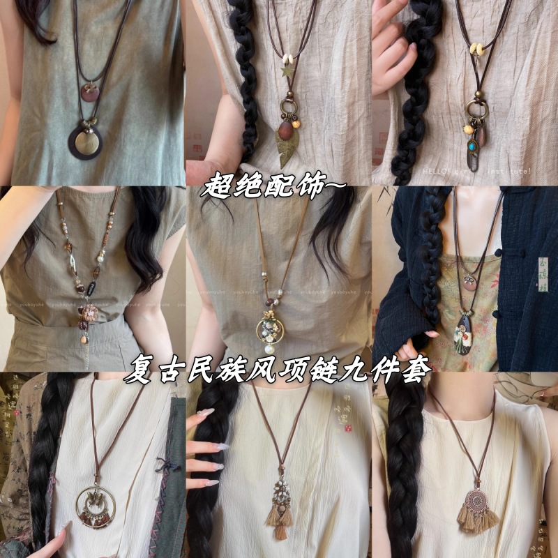 Bohemian New Chinese Style Artistic Mori Style Ethnic Style Niche Beaded Retro Design Retro Long Necklace Pendant