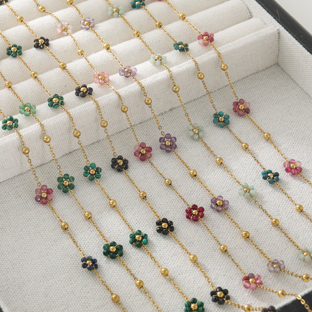 Summer Fresh Girl Flower Necklace Stainless Steel Niche Design Bohemian Clavicle Chain suit Jewelry