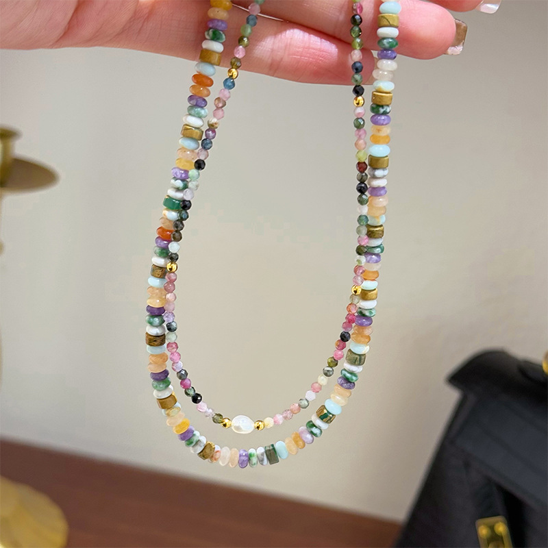 Fashionable Simple Boho Style Color Abacus Bead Necklace Light Luxury Niche Elegant All-match High-end Clavicle Chain