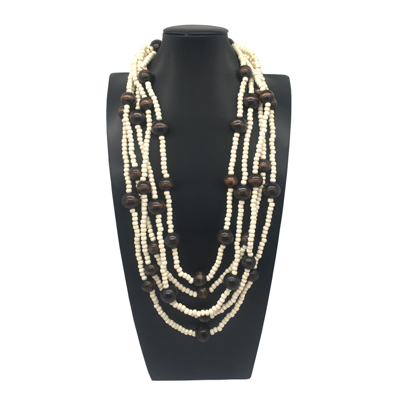 European and American Exaggerated Multi-layer White Coffee Mixed Color Wood Beads Bohemian Stage Show Retro Personality Necklace Women's Wood