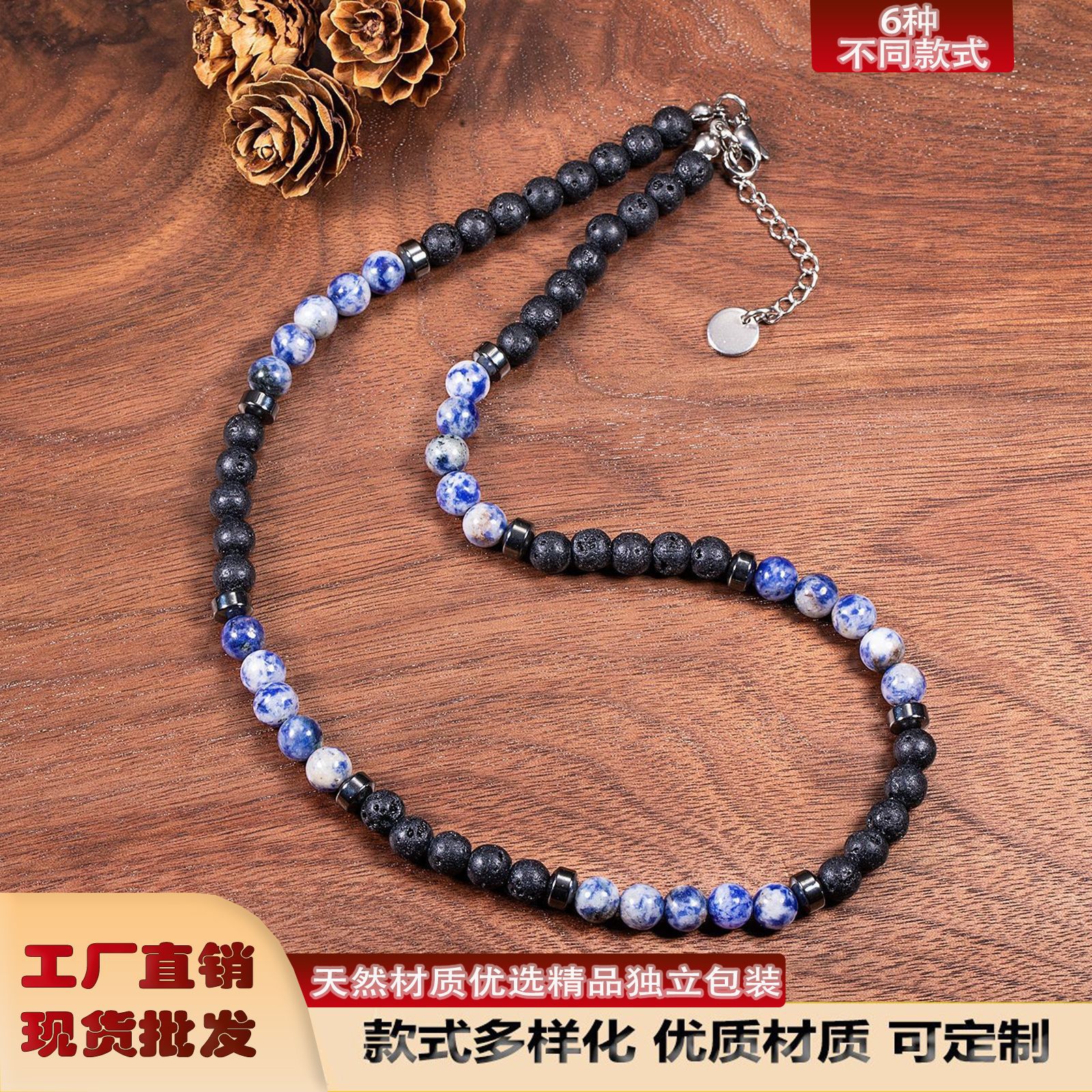 European and American Cross-border Design Natural Tiger's Eye Volcanic Stone Necklace Bohemian Fashion Trend Beaded Simple Necklace