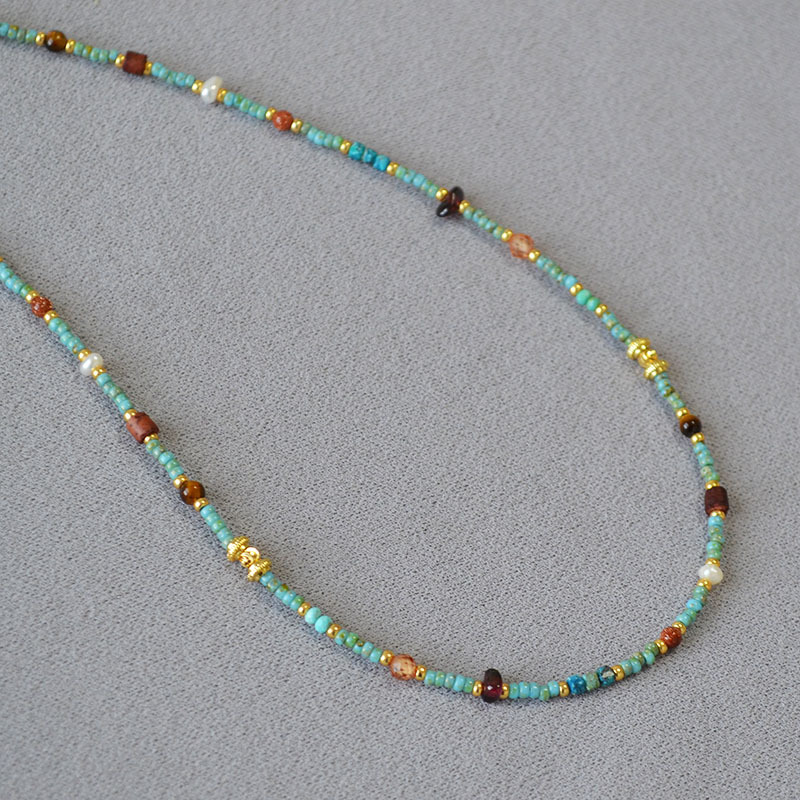 Japanese Vintage Artistic Green Pine Bead Beaded Colorful Gem Simple Elegant Bohemian Necklace Clavicle Chain
