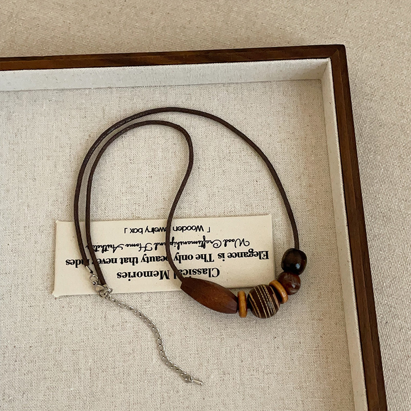 Bohemian Ethnic Style Wooden Beaded Necklace for Women, Retro Light Luxury Fashion Trendy Versatile Choker Collarbone Chain