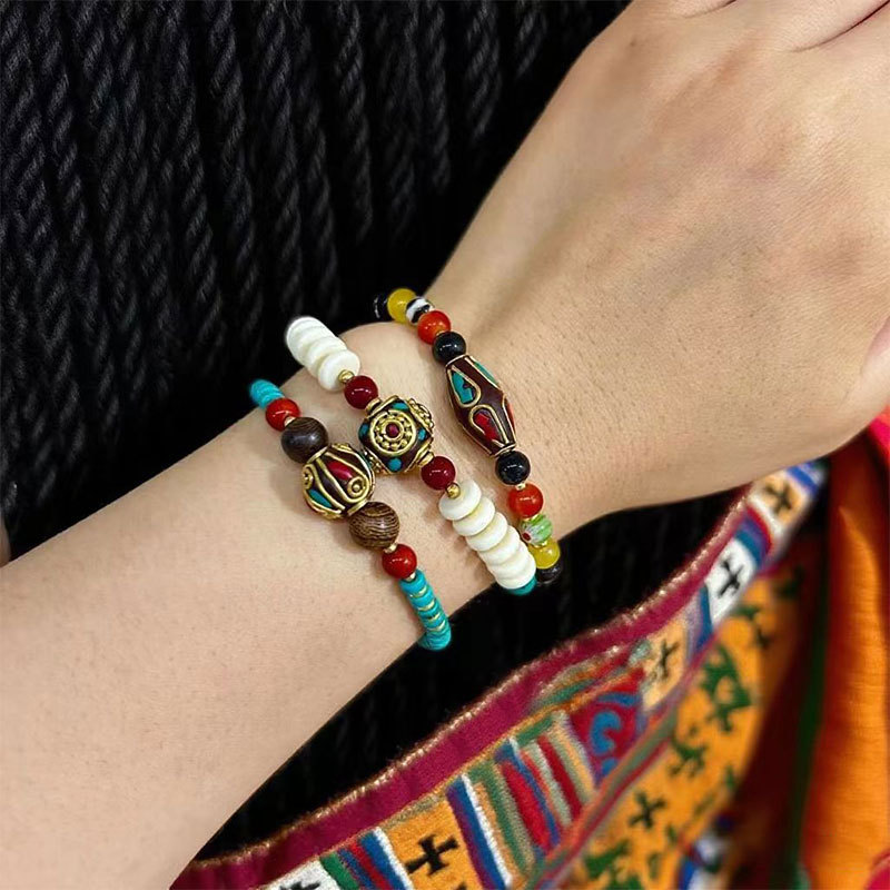 Ethnic Style Bracelet for Women, Retro Nepalese Braided Bracelet, Xizang Ancient Style Creative Bell, Bohemian Style Bracelet