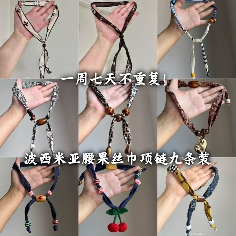 Bohemian Ethnic Style Cashew Silk Scarf Fabric Wooden Bead Necklace Women's Long Sweater Chain Halter Accessories Neck Necklace