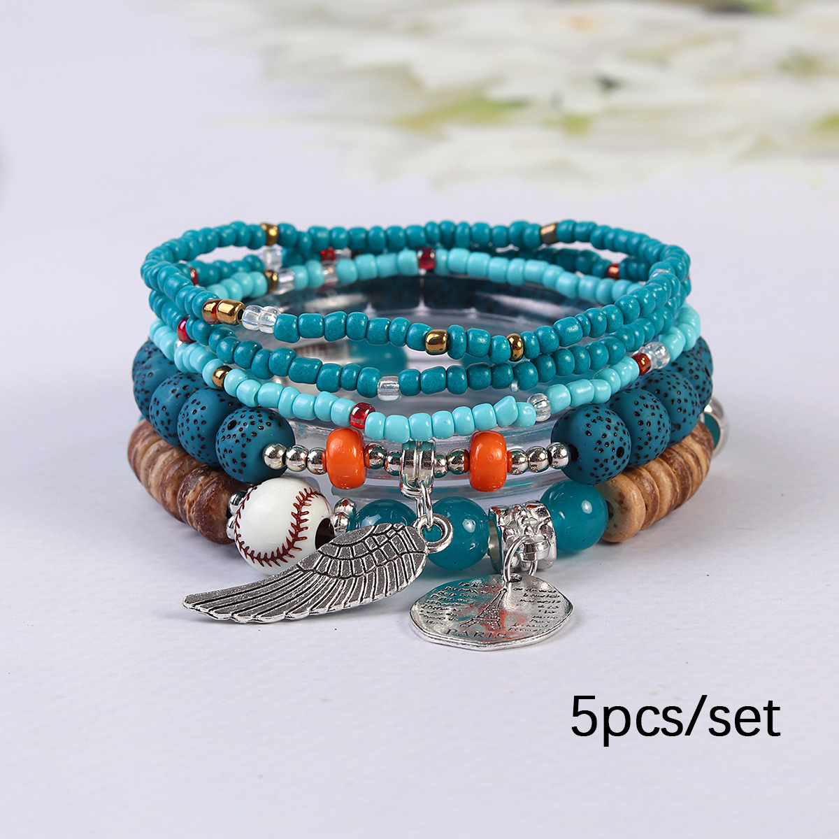 Cross-Border Hot Selling Bohemian Multi-Layer Rice Bead Bracelet Wings Shell Pendant Elastic Rope Bracelet Ethnic Style Jewelry
