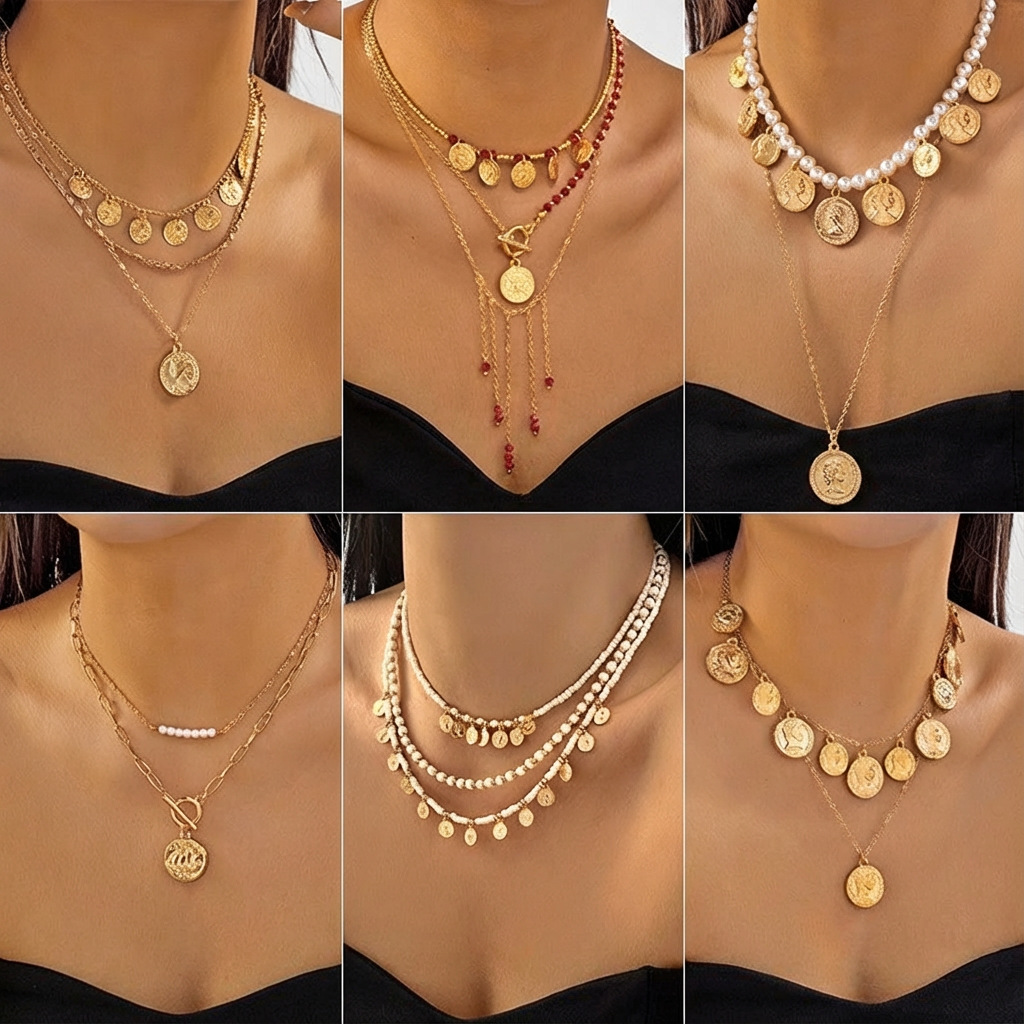 Amazon New Bohemian Style Beautiful 3-piece Beaded Necklace suit Multi-layer Clavicle Chain Jewelry Women