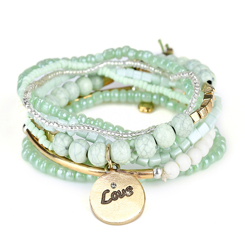 European and American Popular Retro Bohemian Bracelet Ocean Style Elbow Multi-Layer Letter Love Pendant Beaded Bracelet