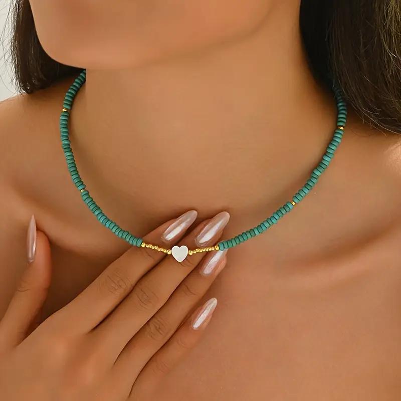 European and American Hot Selling Bohemian Retro Turquoise Love Pearl Shell Woven Necklace Simple Temperament