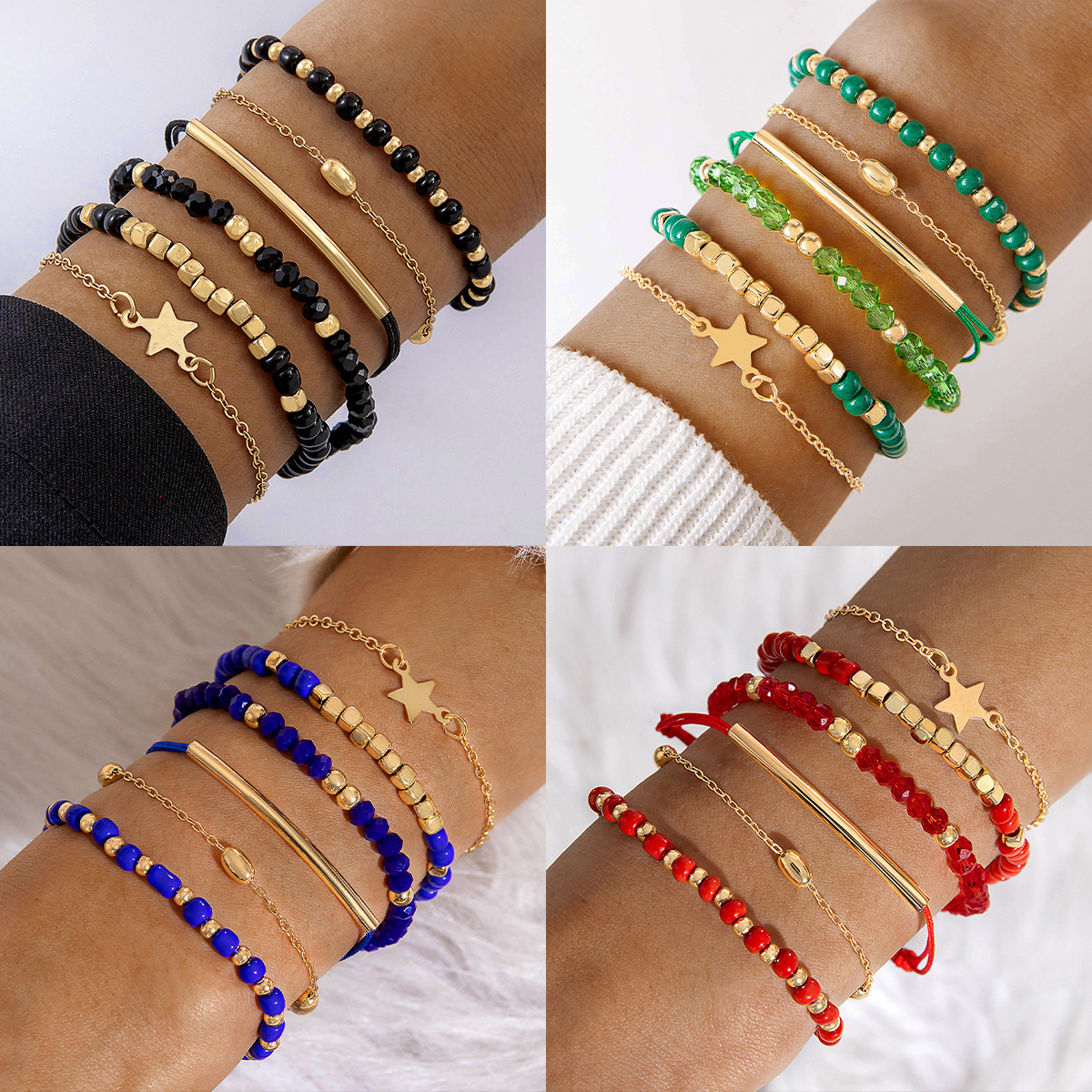 Amazon Cross-Border Retro Colorfulful Rice Bead Beaded Bracelet Six-Piece Set Bohemian Style Five-Pointed Star Bracelet Set
