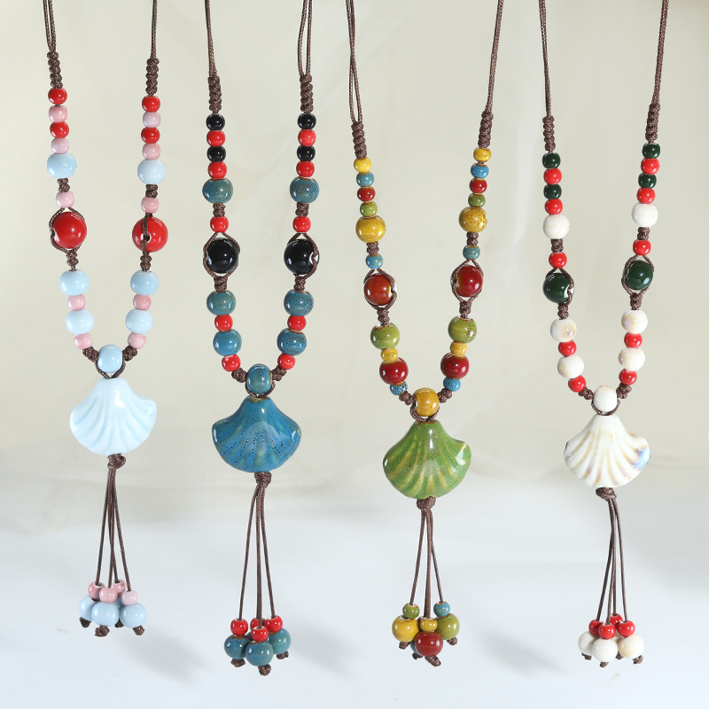 Ethnic Style Colorful Ceramic Shell Necklace Jewelry Long Women's Bohemian Sweater Chain Clothing Accessories Manufacturer Goods